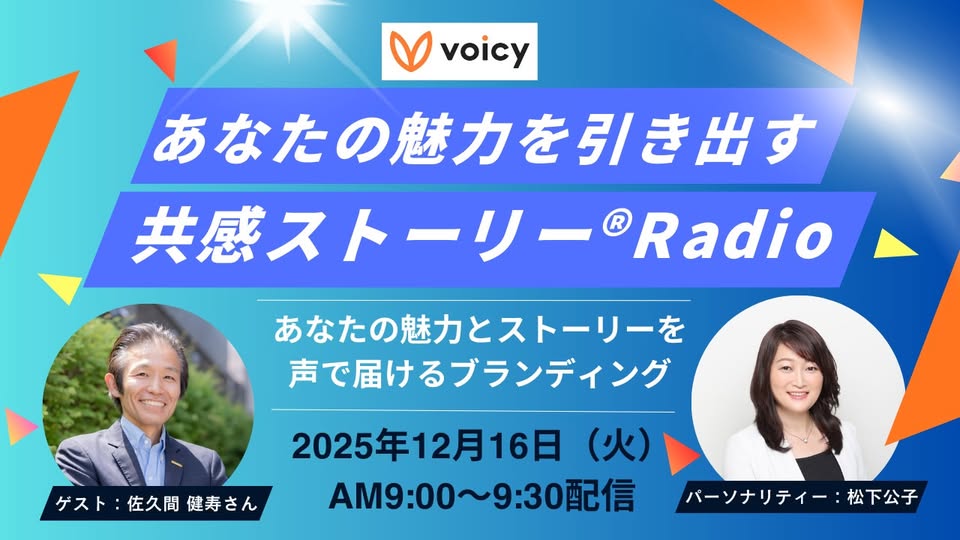 元テレビ朝日系列アナウンサー松下公子が音声メディア・Voicyパーソナリティを務める「あなたの魅力を引き出す!共感ストーリーⓇRadio」