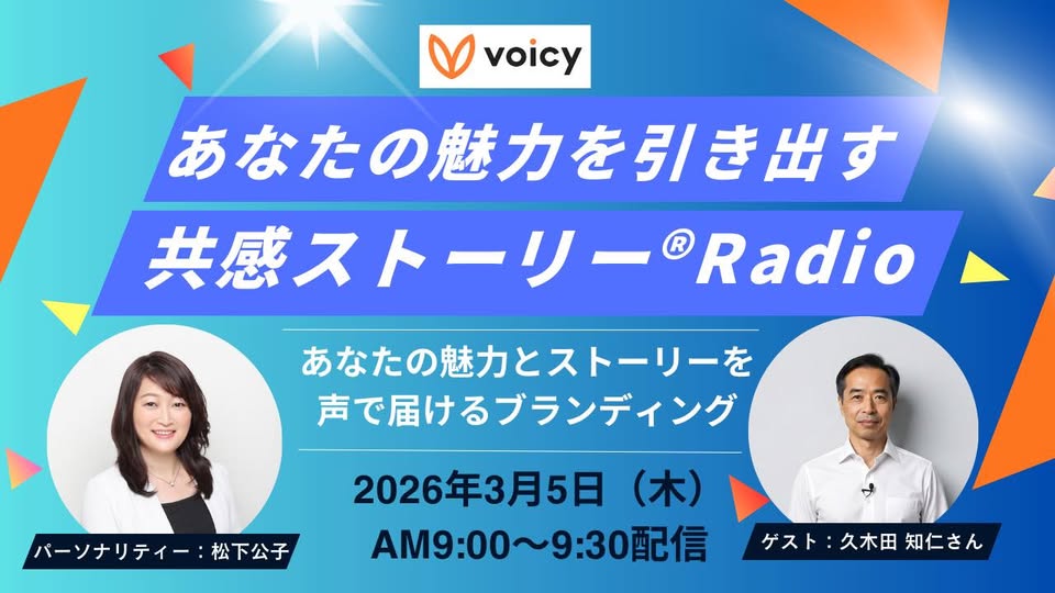 元テレビ朝日系列アナウンサー松下公子が音声メディア・Voicyパーソナリティを務める「あなたの魅力を引き出す!共感ストーリーⓇRadio」